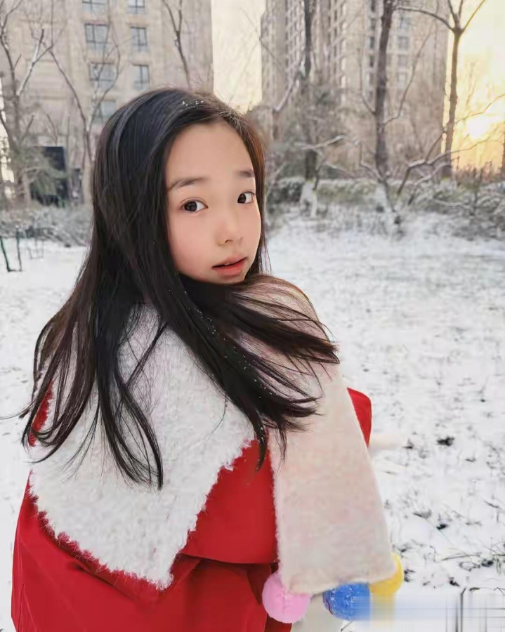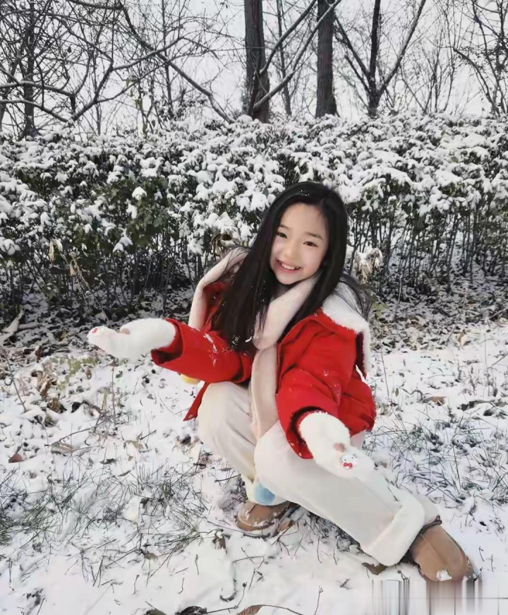 这孩子真的遗传了爸妈的好基因,大眼睛长睫毛,妥妥的美人胚子,之前几次走秀都气场十足,私下玩雪又软萌得不行。