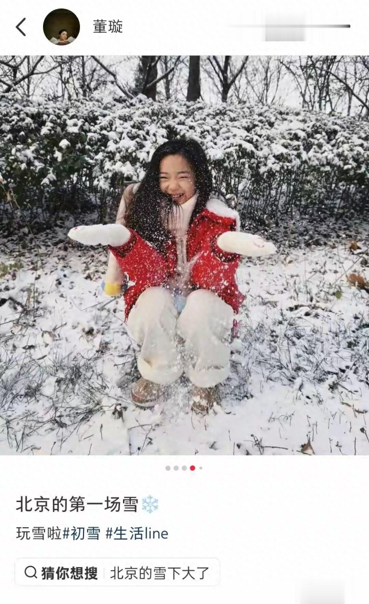 北京初雪刚落下,董璇就火速分享了女儿小酒窝的玩雪美照,直接把冬日治愈感拉满。